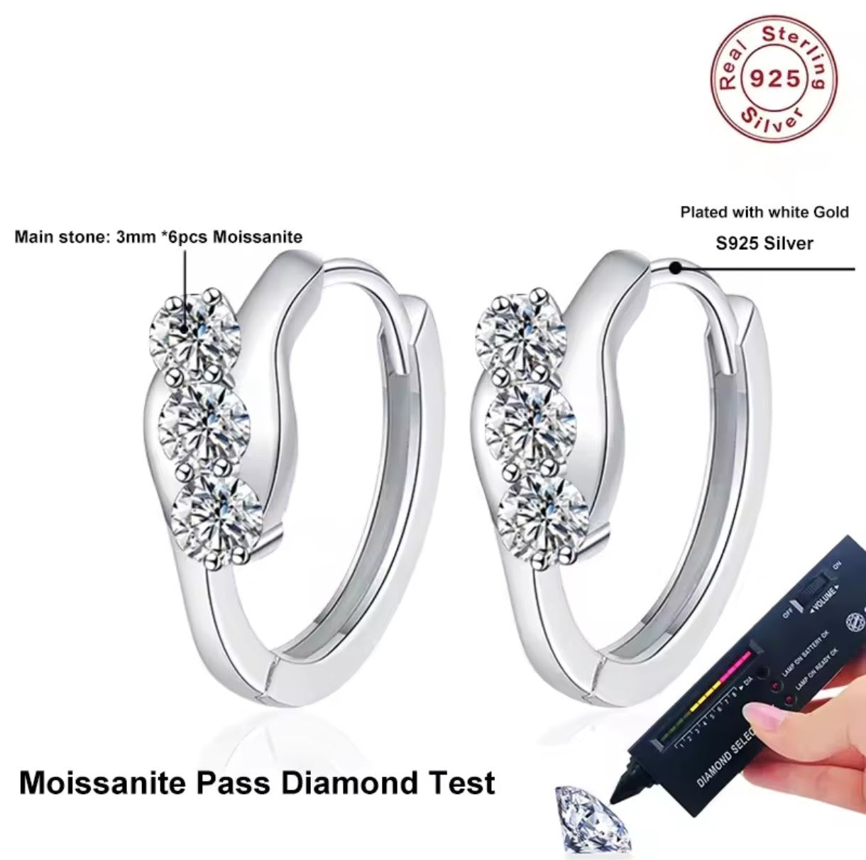 Kolczyki Moissanit koła srebro 925 3mm * 6 sztuk