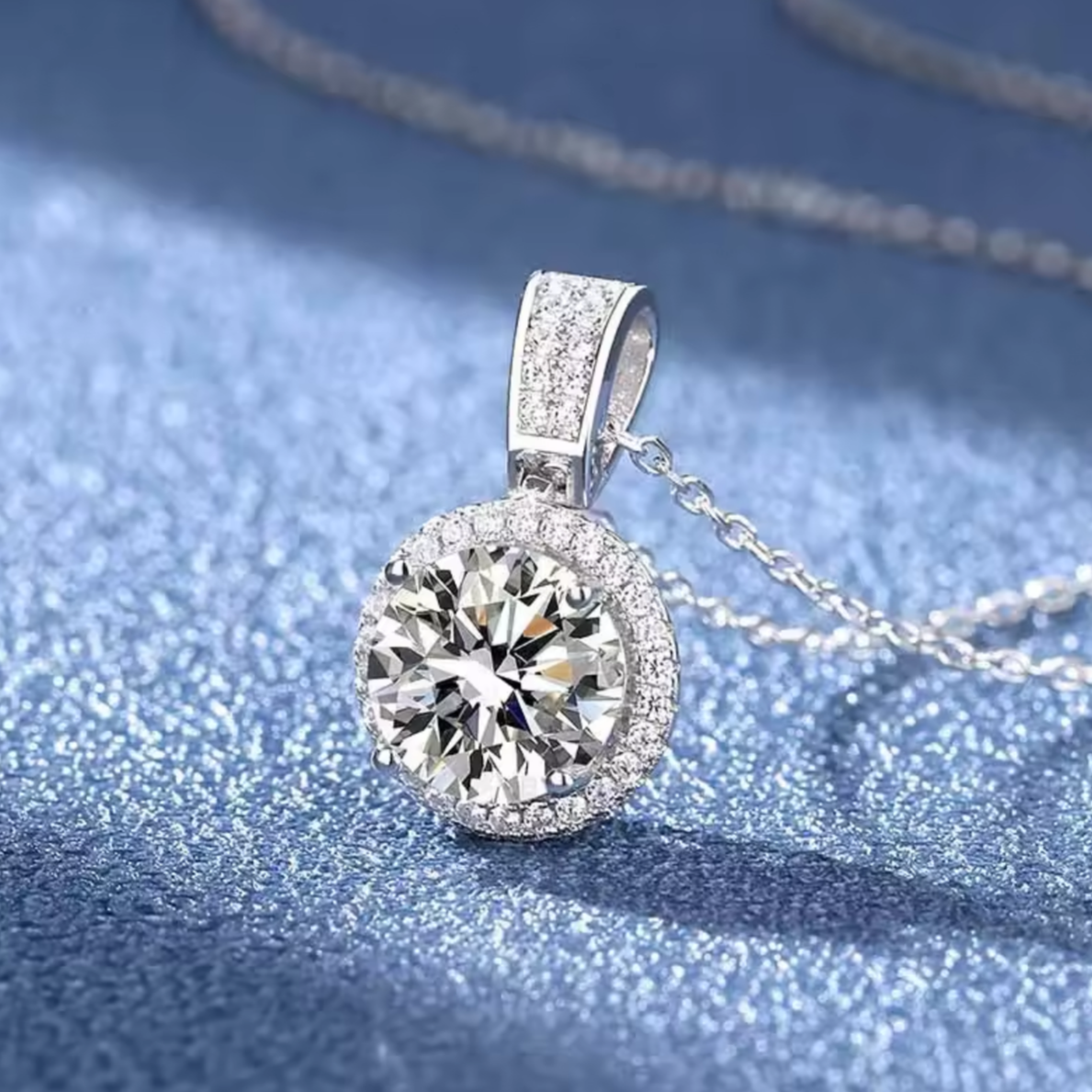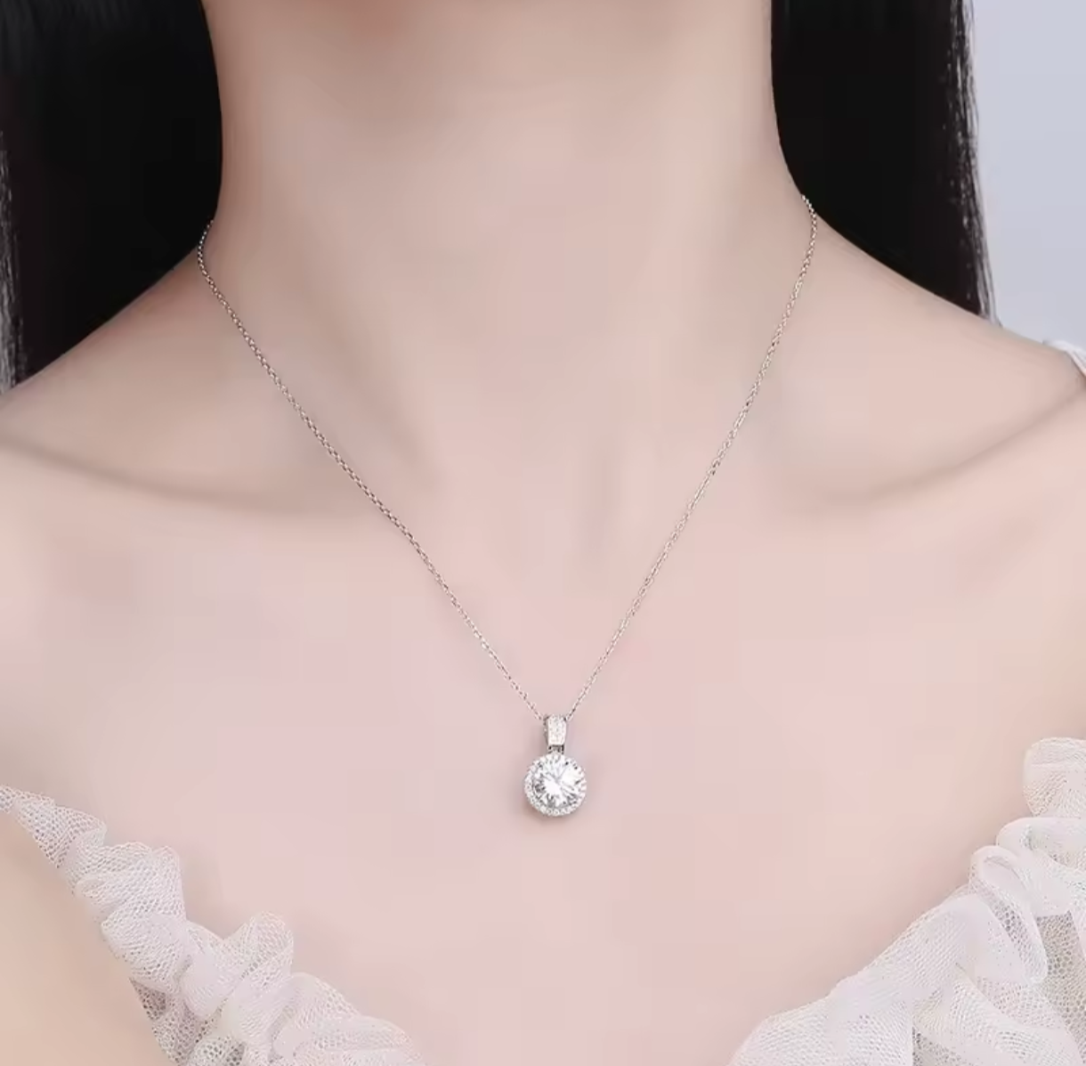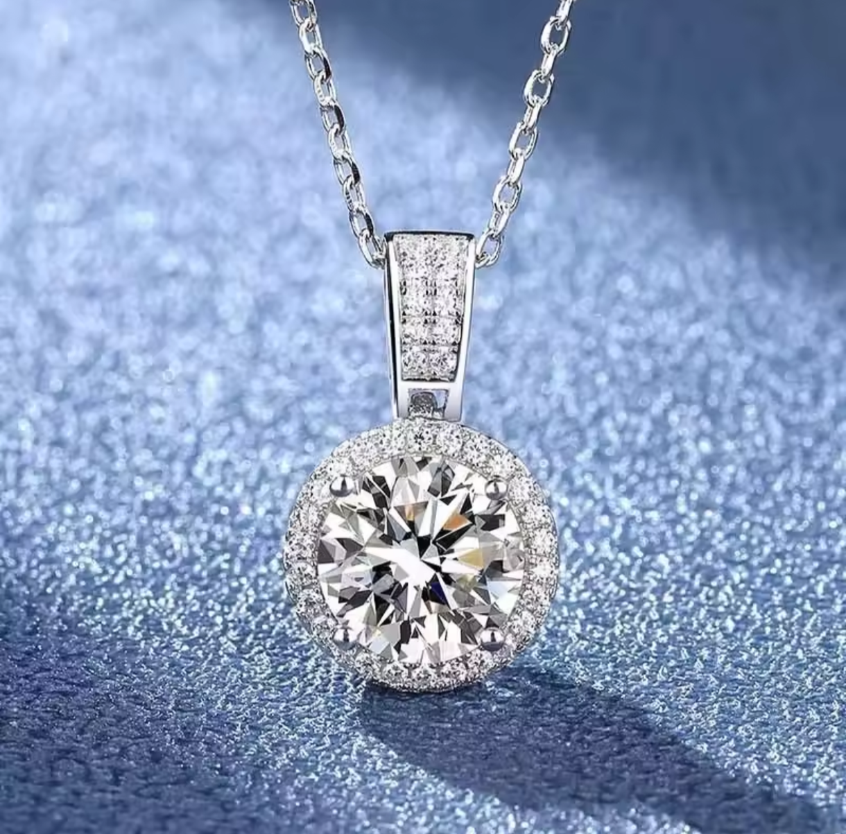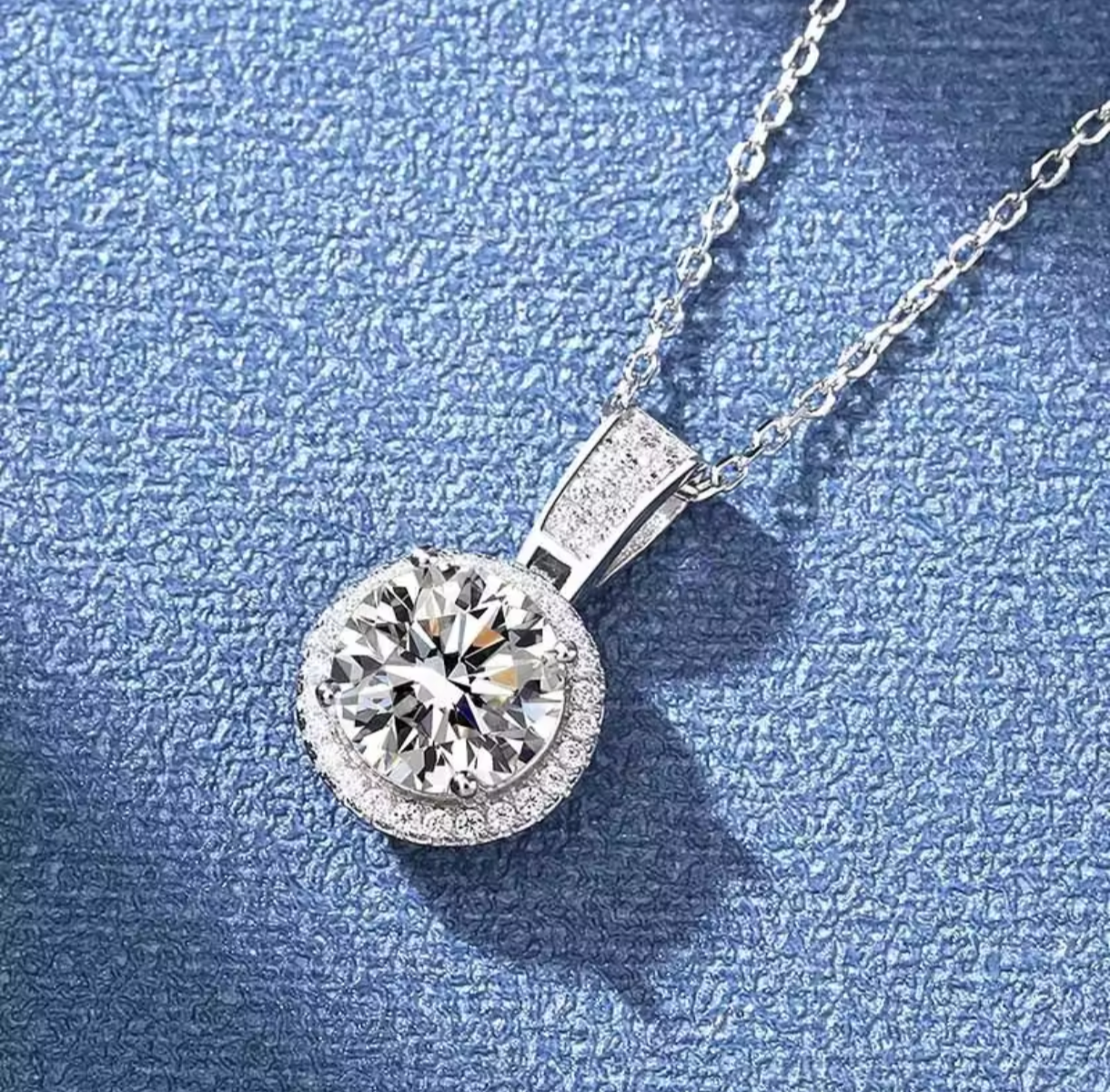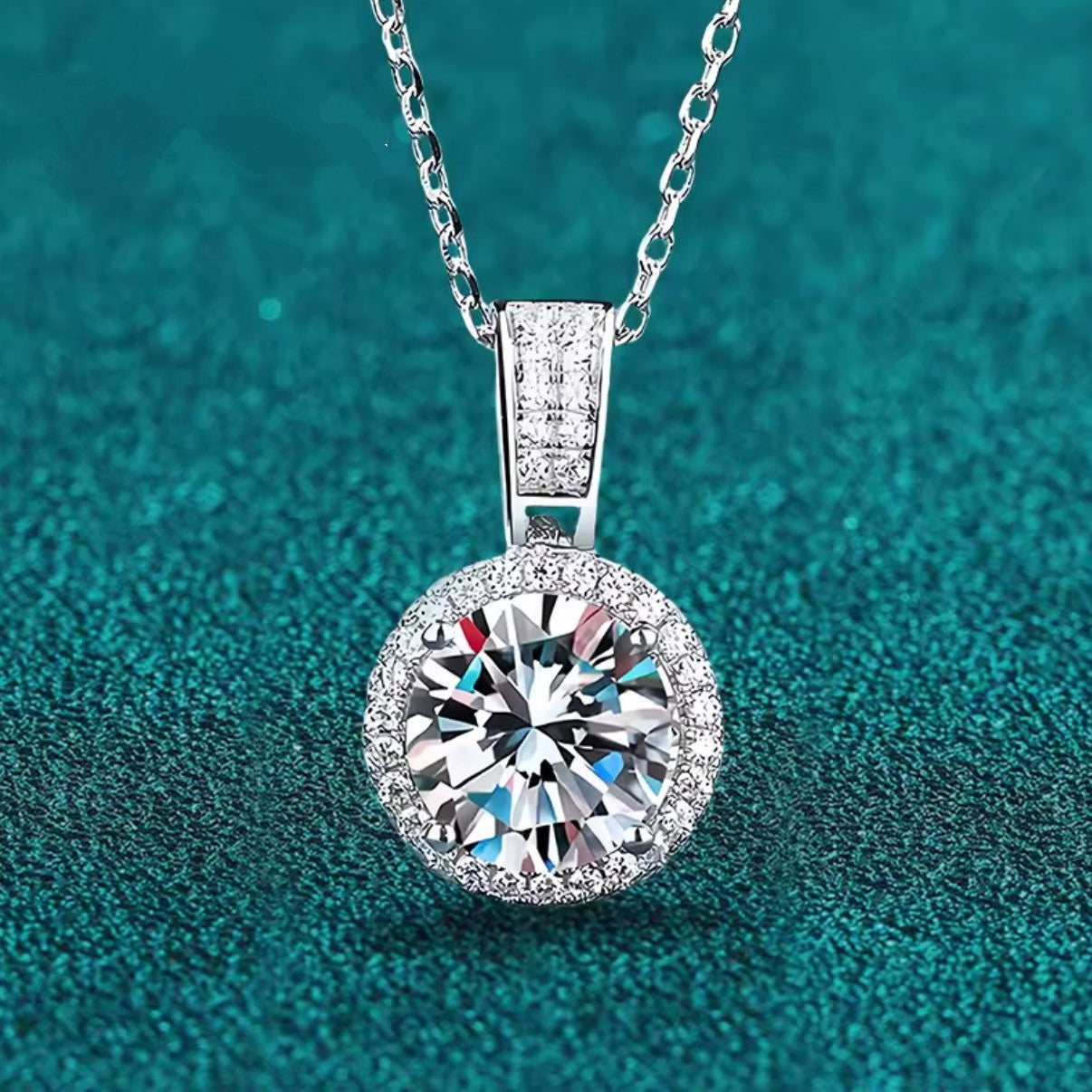 Naszyjnik z moissanitem i cyrkoniami 1ct srebro 925
